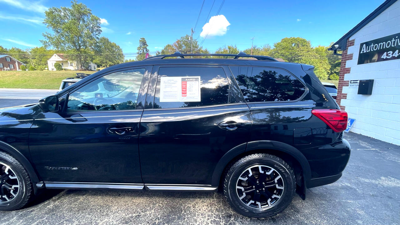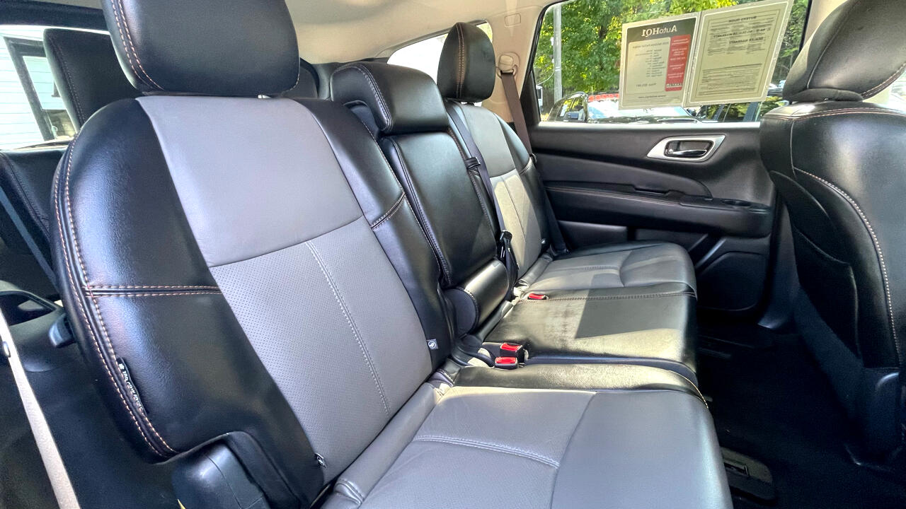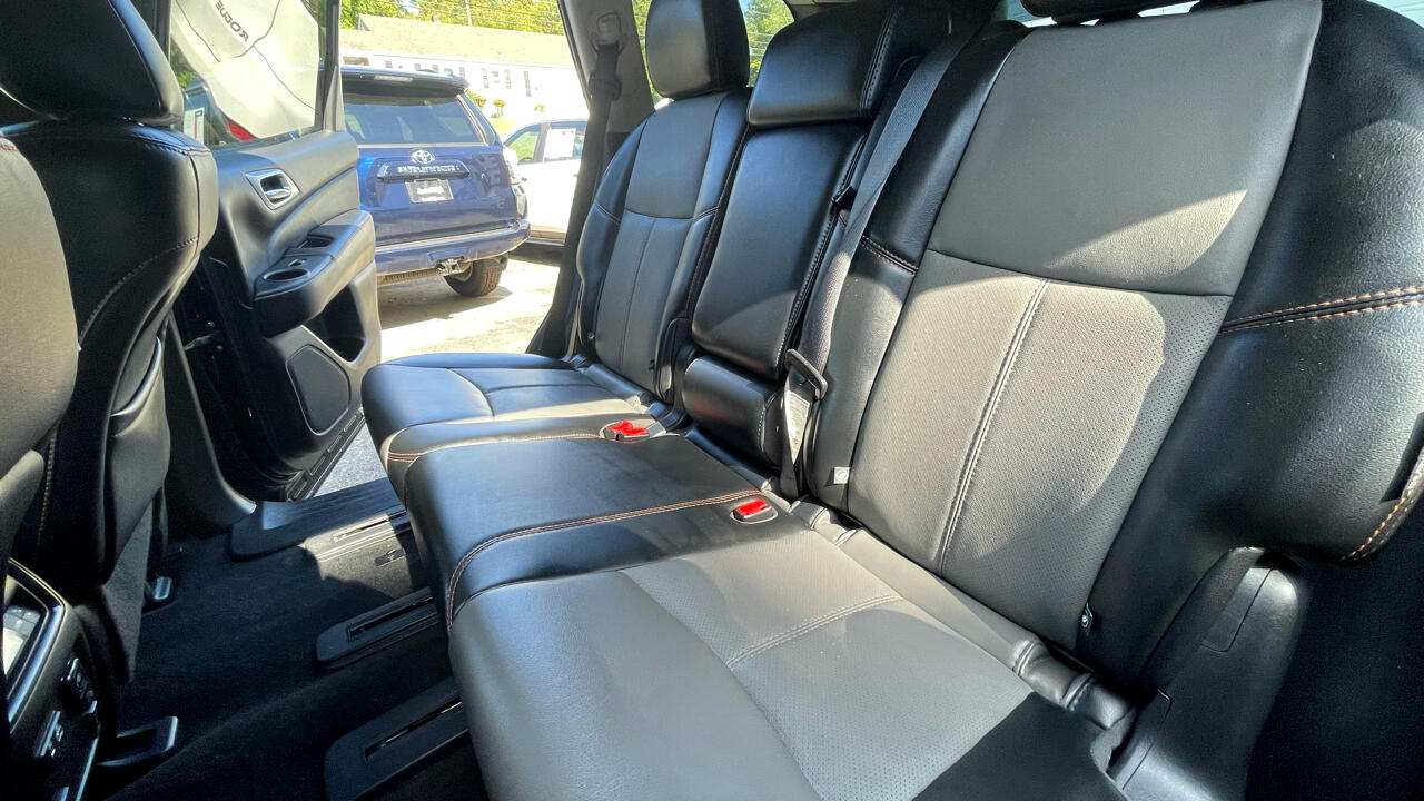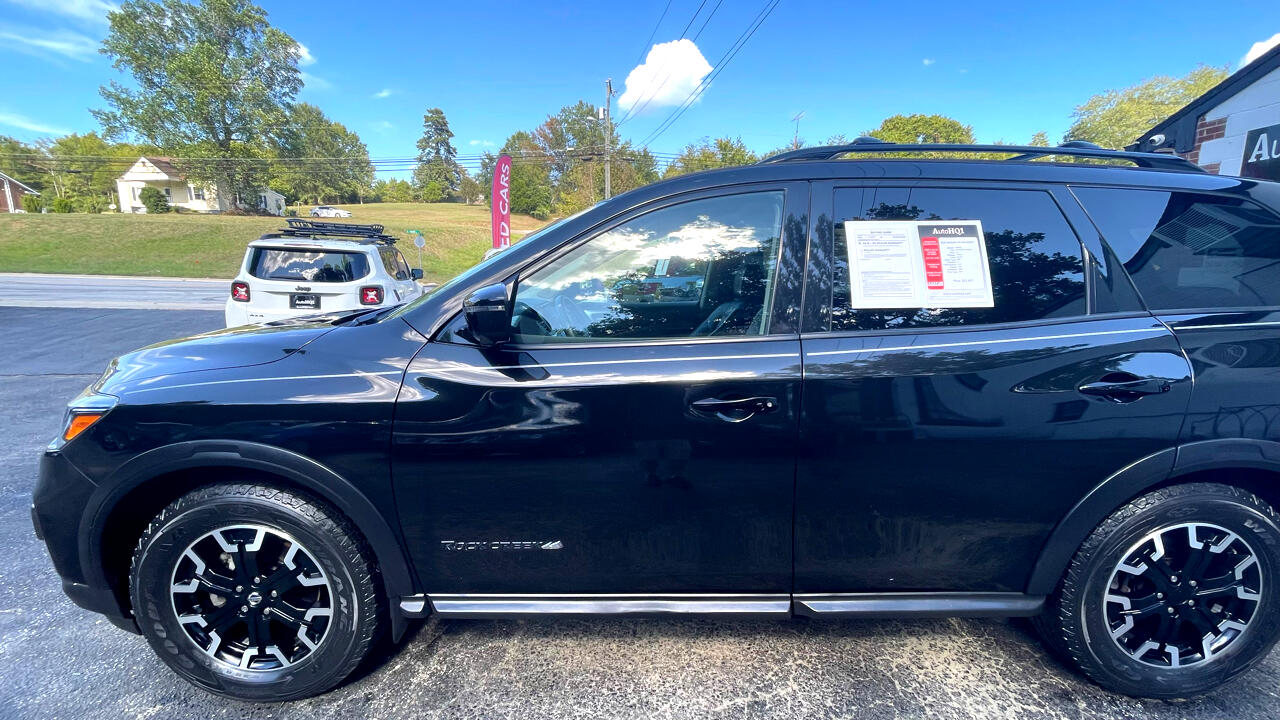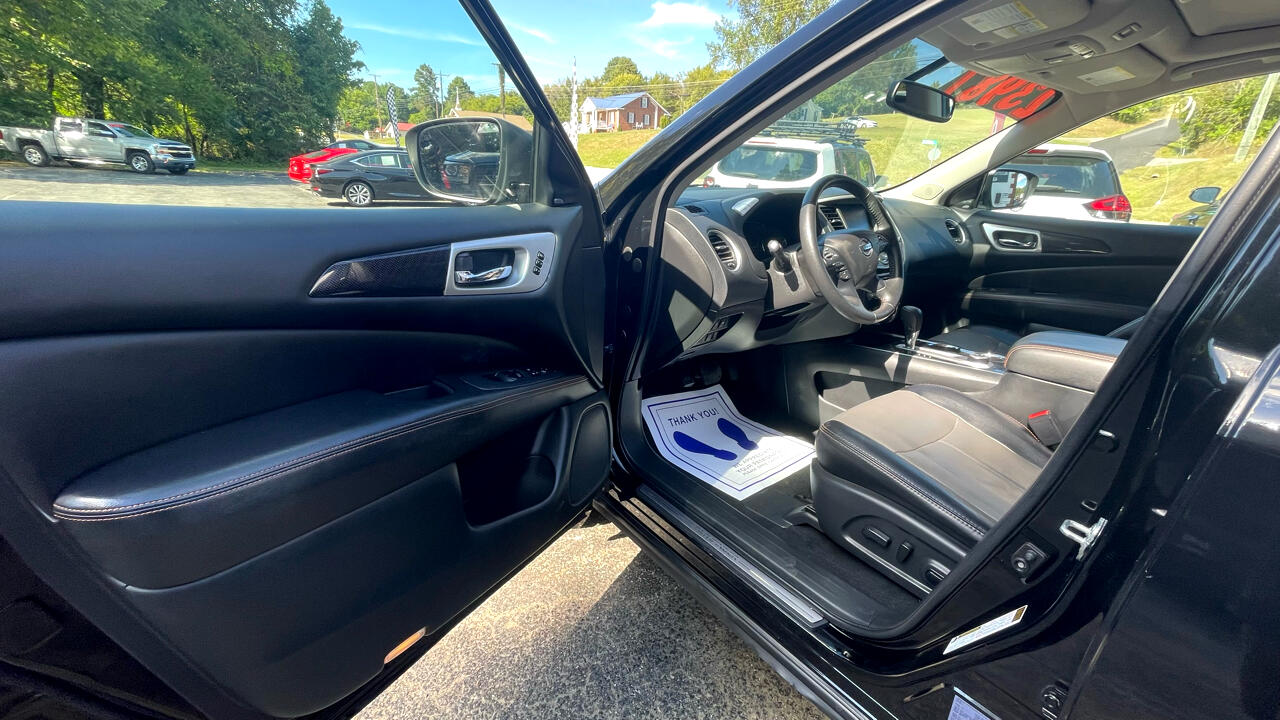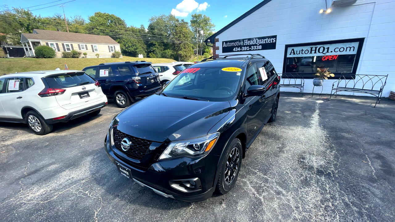 Magnetic Black Pearl 2020 Nissan Pathfinder SL 4WD CVT with Xtronic V6 4WD, 3rd row seats: bench, 6 Speakers, AM/FM radio: SiriusXM, Automatic temperature control, Black Door Handles, Black License Plate Finisher, Black Mesh Grille & V-Motion, Black Molded Over Fenders, Black Outside Rearview Mirrors, Black Roof Rails, Blind Spot Warning, Bose Premium Audio System, Brake assist, Delay-off headlights, Electronic Stability Control, Exterior Parking Camera Rear, Front Aesthetic Silver Skid Plate, Front dual zone A/C, Front fog lights, Fully automatic headlights, Heated door mirrors, Heated Front Bucket Seats, Heated front seats, Heated rear seats, Leather Seating Surfaces, Leather Shift Knob, Leather steering wheel, Memory seat, Navigation System, NissanConnect w/Navigation & Services, Panic alarm, Power door mirrors, Power driver seat, Power Liftgate, Power Panoramic Moonroof, Power passenger seat, Power steering, Power windows, Premium Metallic Interior Trim, Radio data system, Radio: AM/FM/CD Audio System w/NissanConnect, Rear air conditioning, Rear Parking Sensors, Reclining 3rd row seat, Remote keyless entry, Rock Creek Edition, Rock Creek Edition Cross Bars, Rock Creek Floor & Cargo Mats, Security system, SiriusXM Traffic, SL Rock Creek Edition Premium Package, Speed control, Splash Guards, Split folding rear seat, Spoiler, Steering wheel mounted audio controls, Tachometer, Telescoping steering wheel, Tilt steering wheel, Trailer Tow Hitch & Harness, Turn signal indicator mirrors, Unique Front Door Badging, Unique Rock Creek Edition Seating Surfaces, Wheels: 18" Unique Dark.