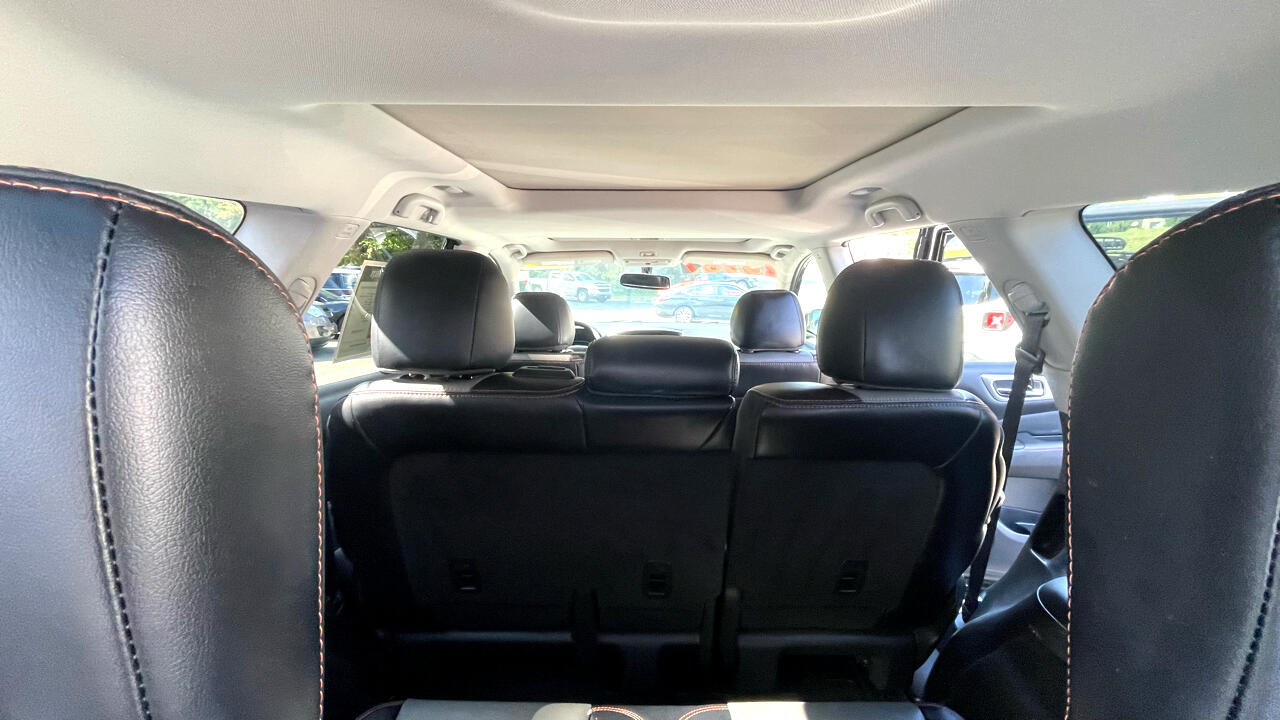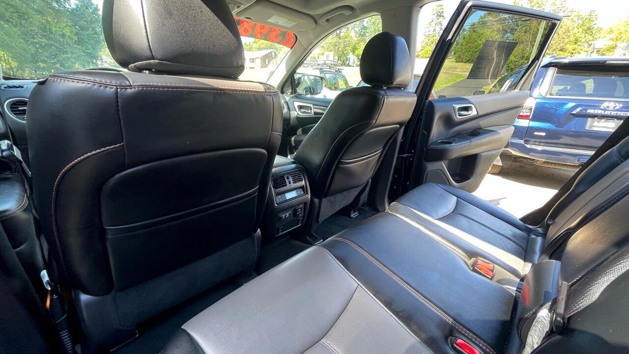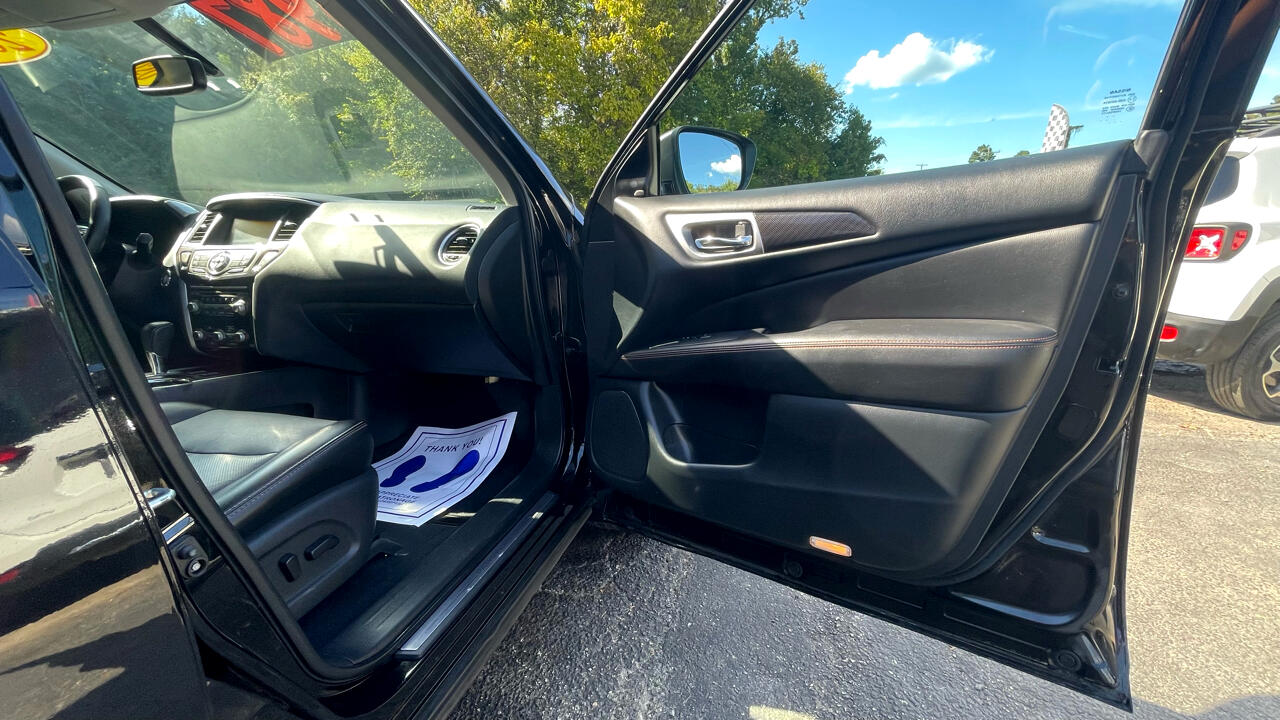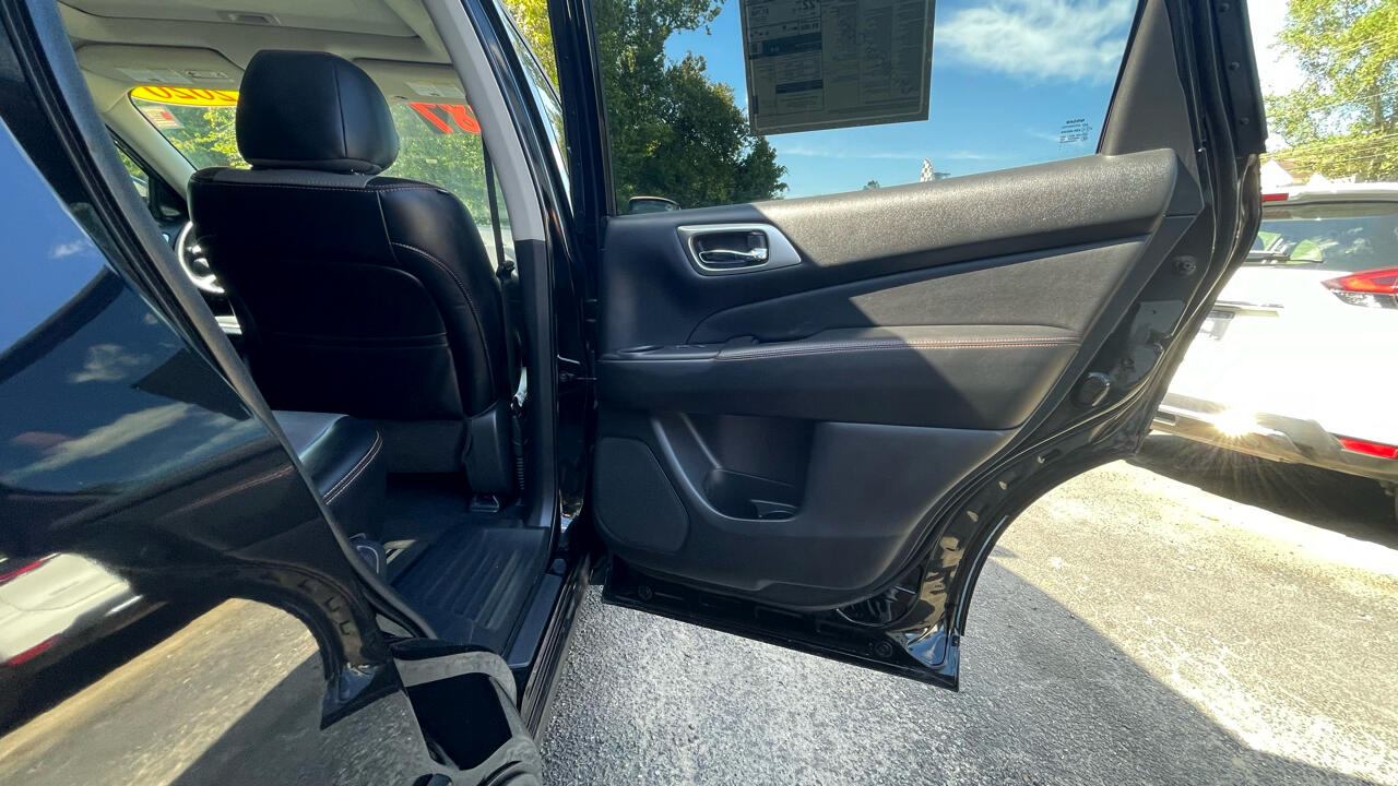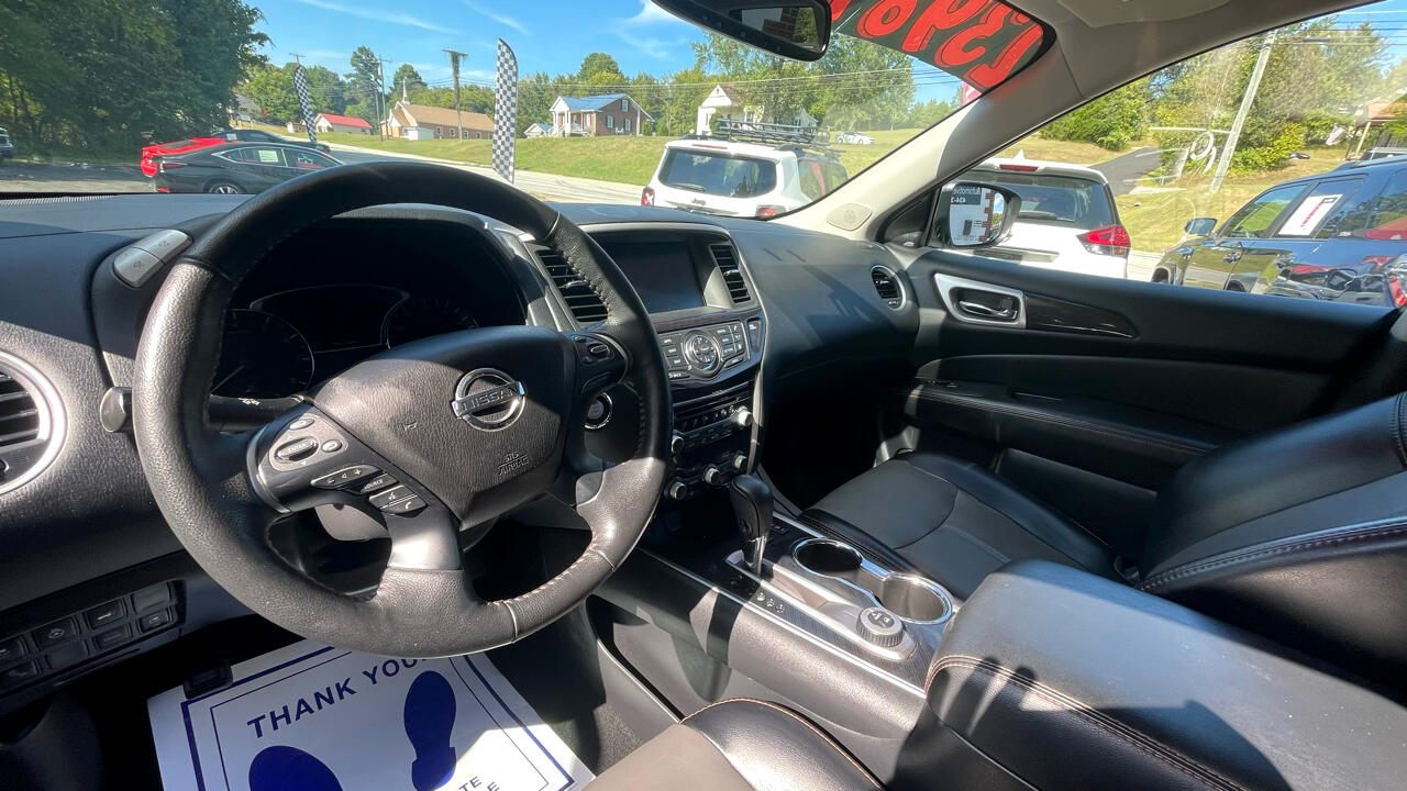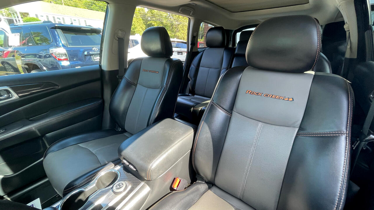 Magnetic Black Pearl 2020 Nissan Pathfinder SL 4WD CVT with Xtronic V6 4WD, 3rd row seats: bench, 6 Speakers, AM/FM radio: SiriusXM, Automatic temperature control, Black Door Handles, Black License Plate Finisher, Black Mesh Grille & V-Motion, Black Molded Over Fenders, Black Outside Rearview Mirrors, Black Roof Rails, Blind Spot Warning, Bose Premium Audio System, Brake assist, Delay-off headlights, Electronic Stability Control, Exterior Parking Camera Rear, Front Aesthetic Silver Skid Plate, Front dual zone A/C, Front fog lights, Fully automatic headlights, Heated door mirrors, Heated Front Bucket Seats, Heated front seats, Heated rear seats, Leather Seating Surfaces, Leather Shift Knob, Leather steering wheel, Memory seat, Navigation System, NissanConnect w/Navigation & Services, Panic alarm, Power door mirrors, Power driver seat, Power Liftgate, Power Panoramic Moonroof, Power passenger seat, Power steering, Power windows, Premium Metallic Interior Trim, Radio data system, Radio: AM/FM/CD Audio System w/NissanConnect, Rear air conditioning, Rear Parking Sensors, Reclining 3rd row seat, Remote keyless entry, Rock Creek Edition, Rock Creek Edition Cross Bars, Rock Creek Floor & Cargo Mats, Security system, SiriusXM Traffic, SL Rock Creek Edition Premium Package, Speed control, Splash Guards, Split folding rear seat, Spoiler, Steering wheel mounted audio controls, Tachometer, Telescoping steering wheel, Tilt steering wheel, Trailer Tow Hitch & Harness, Turn signal indicator mirrors, Unique Front Door Badging, Unique Rock Creek Edition Seating Surfaces, Wheels: 18" Unique Dark.