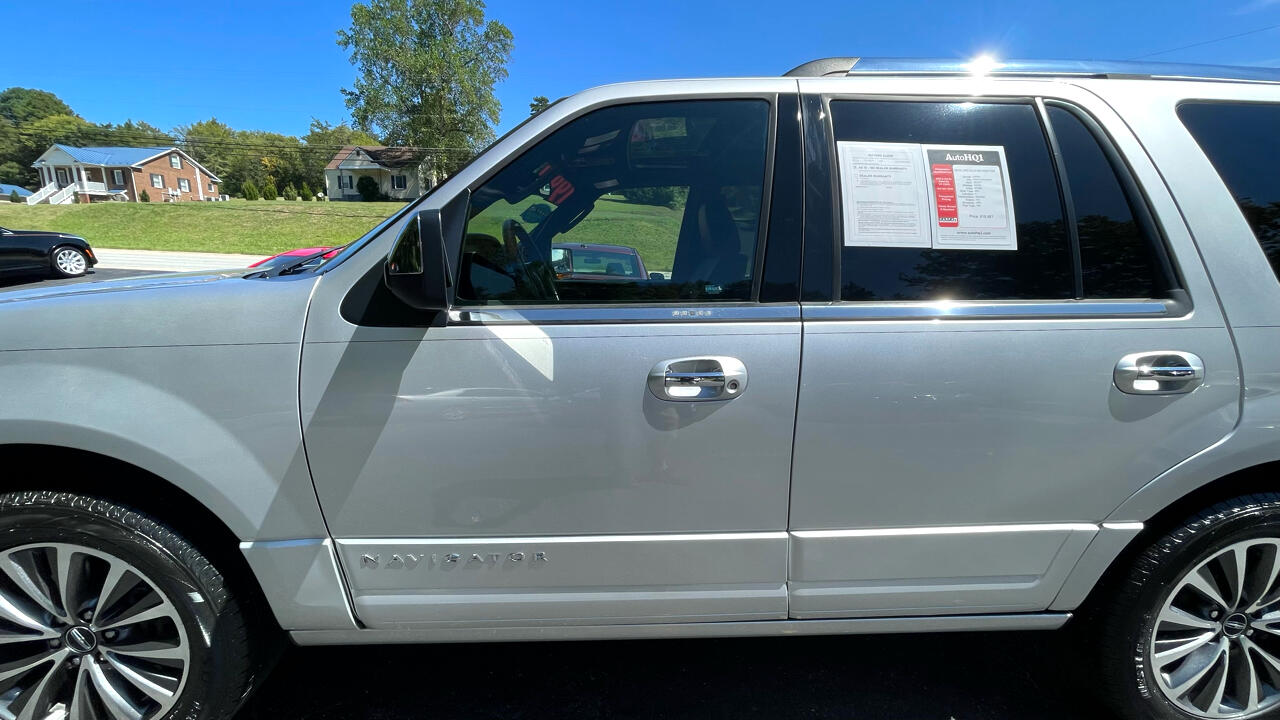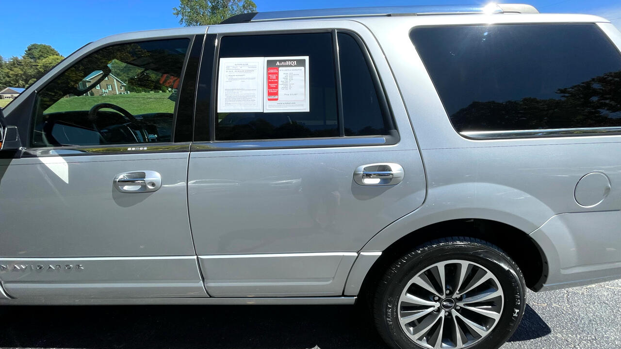 Ingot Silver 2016 Lincoln Navigator Select 4WD 6-Speed Automatic 3.5L V6 4WD, Ebony w/Premium Leather Low Back Bucket Seats, 14 Speakers, 2nd Row 40/20/40 Leather Split Bench Seat, 2nd Row Heated Seats (DISC), 3rd row seats: split-bench, 4-Wheel Disc Brakes, ABS brakes, Adjustable pedals, Air Conditioning, AM/FM radio: SiriusXM, Auto-leveling suspension, Automatic temperature control, CD player, Delay-off headlights, Dual front impact airbags, Dual front side impact airbags, DVD-Audio, Electronic Stability Control, Equipment Group 200A Select, Exterior Parking Camera Rear, Four wheel independent suspension, Front dual zone A/C, Fully automatic headlights, Heated door mirrors, Heated front seats, Heated rear seats, High-Intensity Discharge Headlights, Memory seat, Navigation System, Panic alarm, Pedal memory, Power door mirrors, Power driver seat, Power Liftgate, Power Moonroof, Power passenger seat, Power steering, Power windows, Premium audio system: THX II, Premium Leather Low Back Bucket Seats, Radio: HD w/Single CD/DVD Player, Rain sensing wipers, Rear air conditioning, Rear window defroster, Rear window wiper, Reclining 3rd row seat, Roof rack, Security system, SIRIUS Satellite Radio, Speed control, Speed-sensing steering, Speed-Sensitive Wipers, Steering wheel memory, Steering wheel mounted audio controls, SYNC 3 Communications & Entertainment System, Telescoping steering wheel, Tilt steering wheel, Traction control, Trip computer, Turn signal indicator mirrors, Variably intermittent wipers, Ventilated front seats, Wheels: 20" Ultra Brite Machined Aluminum.
