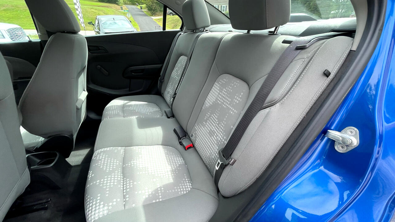 Kinetic Blue Metallic 2018 Chevrolet Sonic LS FWD 6-Speed Automatic ECOTEC 1.8L I4 DOHC VVT 2 USB Ports & Auxiliary Input Jack, 3.47 Final Drive Axle Ratio, 4 Speakers, 4-Speaker Audio System Feature, ABS brakes, Air Conditioning, Apple CarPlay/Android Auto, Brake assist, Delay-off headlights, Dual front impact airbags, Dual front side impact airbags, Electronic Stability Control, Exterior Parking Camera Rear, Fully automatic headlights, Panic alarm, Power steering, Preferred Equipment Group 1SB, Radio data system, Radio: Chevrolet MyLink AM/FM Stereo w/7" Screen, Rear window defroster, Security system, Tachometer, Telescoping steering wheel, Tilt steering wheel.