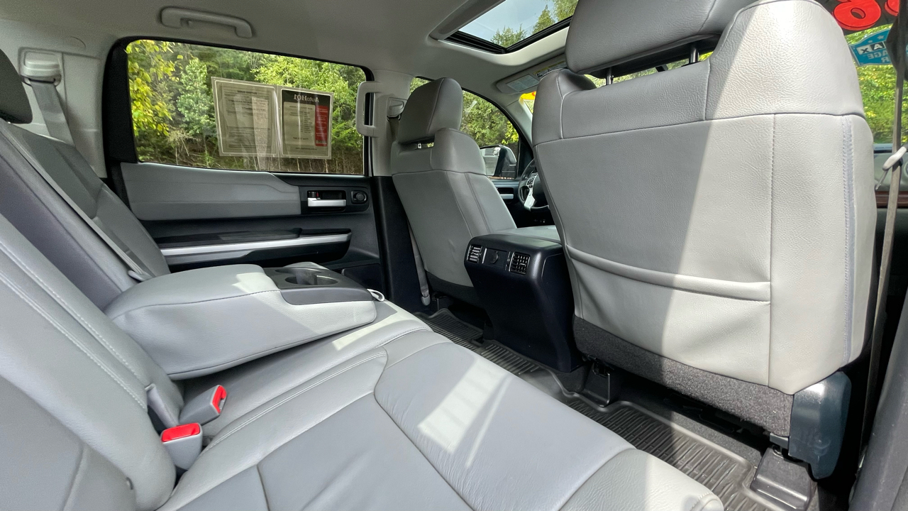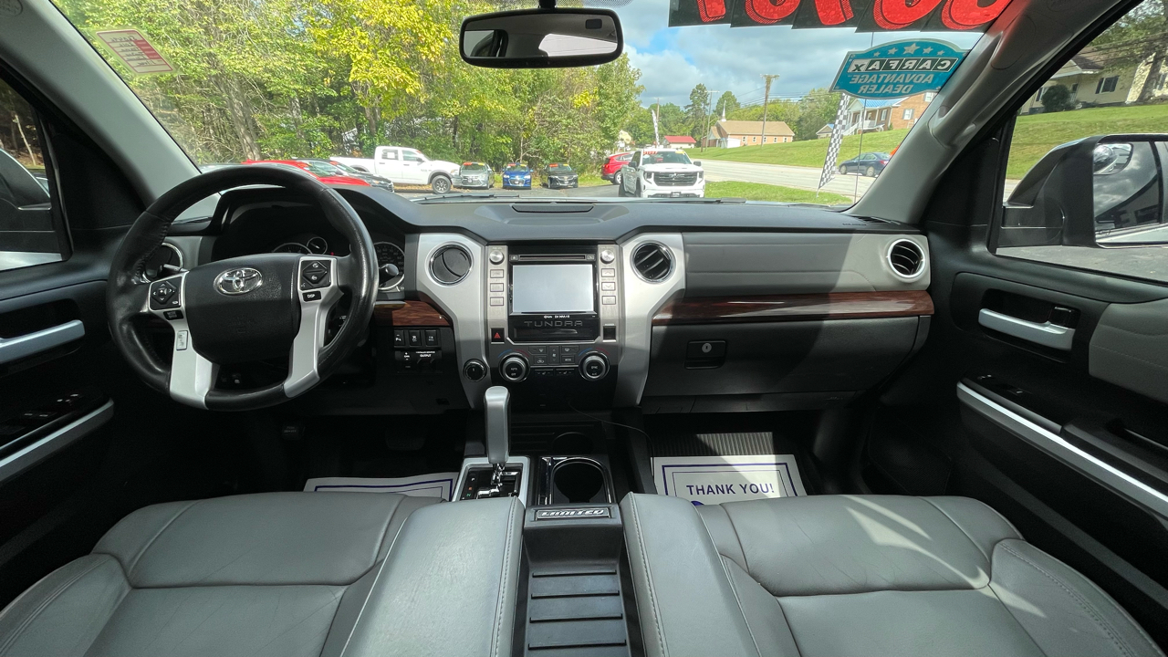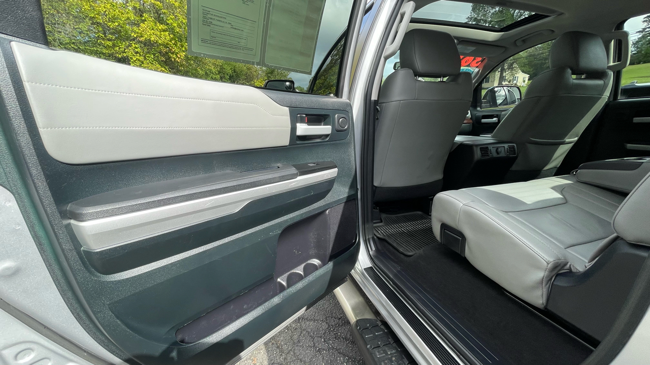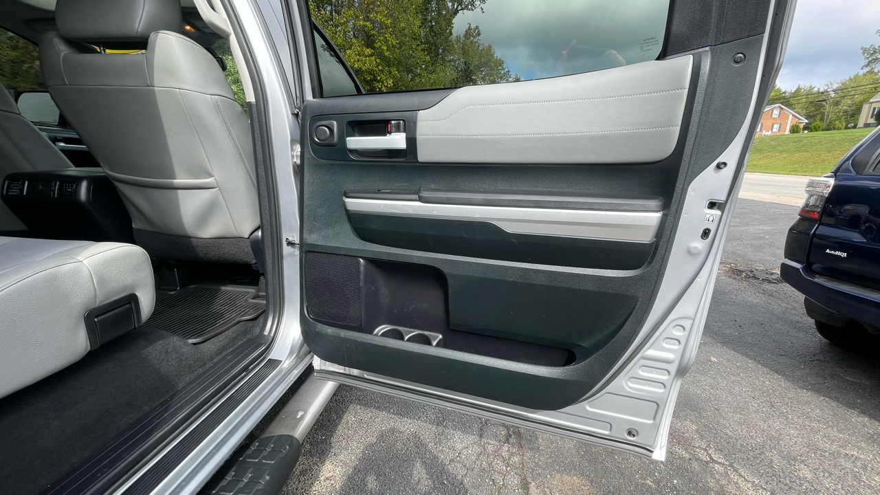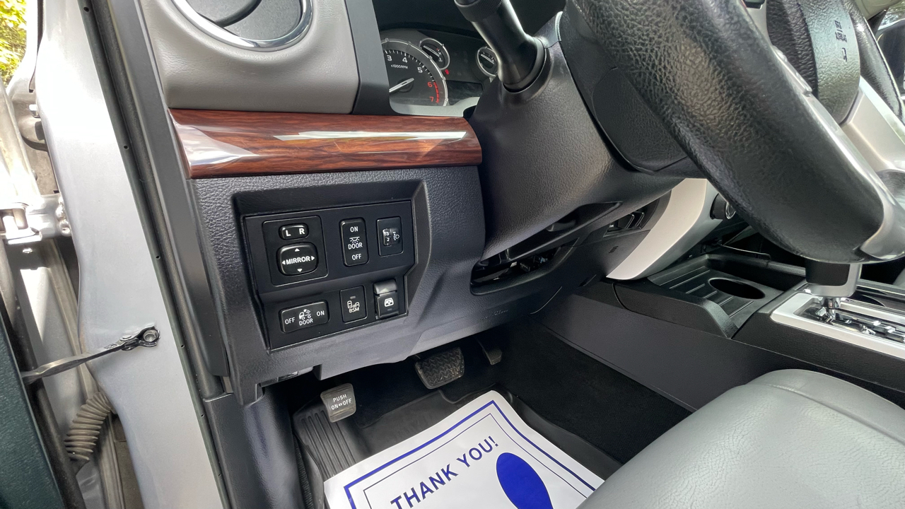 2016 Toyota Tundra Limited 5.7L V8 4WD 6-Speed Automatic Electronic with Overdrive 5.7L 8-Cylinder SMPI DOHC 4WD, 12 Speakers, 4-Wheel Disc Brakes, ABS brakes, AM/FM radio: SiriusXM, Automatic temperature control, Brake assist, CD player, Dual front impact airbags, Dual front side impact airbags, Electronic Stability Control, Entune App Suite, Exterior Parking Camera Rear, Front dual zone A/C, Front fog lights, Fully automatic headlights, Heated door mirrors, Heated Front Bucket Seats, Heated front seats, Leather Seat Trim (LB), Navigation System, Panic alarm, Power door mirrors, Power driver seat, Power steering, Power Tilt & Slide Moonroof w/Sliding Sunshade, Power windows, Radio: Entune AM/FM/HD w/CD Player, Rear window defroster, Remote keyless entry, Security system, SIRIUSXM Satellite Radio, Speed control, Speed-sensing steering, Steering wheel mounted audio controls, Tachometer, Telescoping steering wheel, Tilt steering wheel, Traction control, Wheels: 20" x 8J Split 5-Spoke Aluminum Alloy.